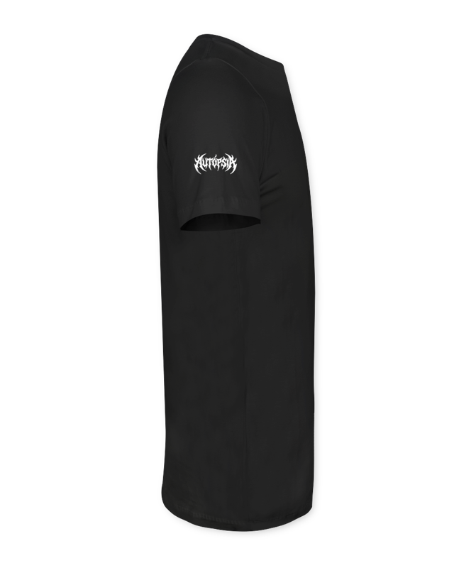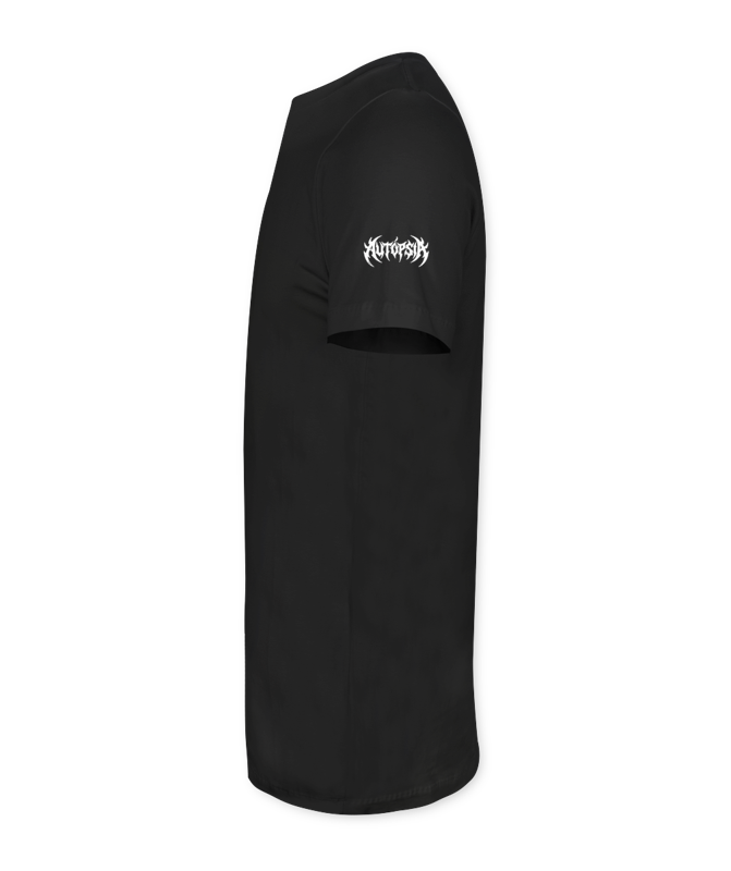 Uma arte intensa e sombria que traduz a essência crua da Autópsia. No centro, uma entidade demonÃaca alada domina a cena, cercada por sÃmbolos ocultos, velas acesas e ossadas entrelaçadas.